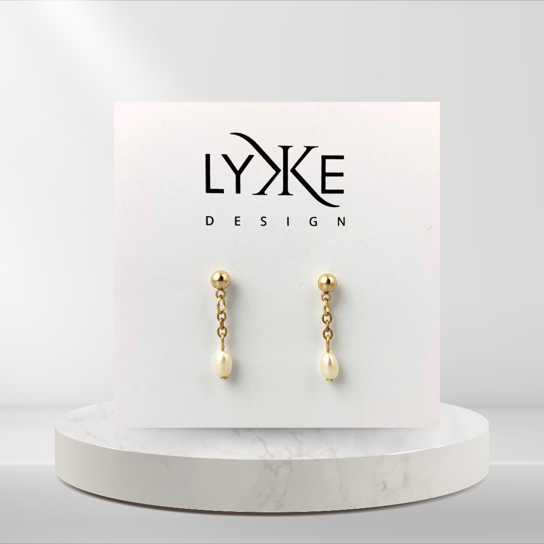 Perlesand - Gullfargede øredobber med hengende ferskvannsperle