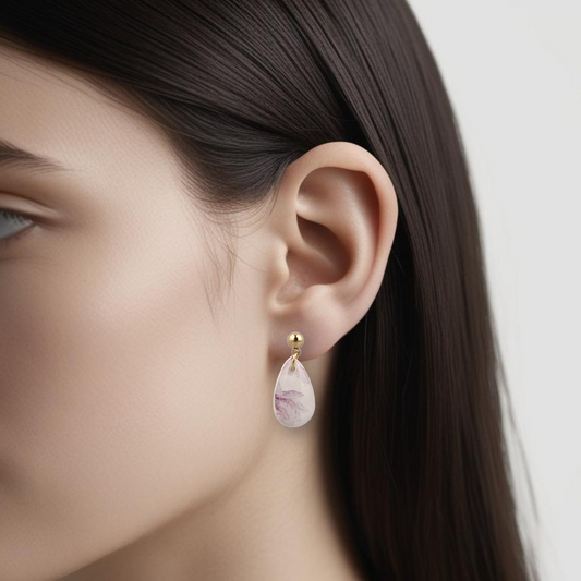 Gullfargede øredobber med liten dråpe Grå marmor/gull
