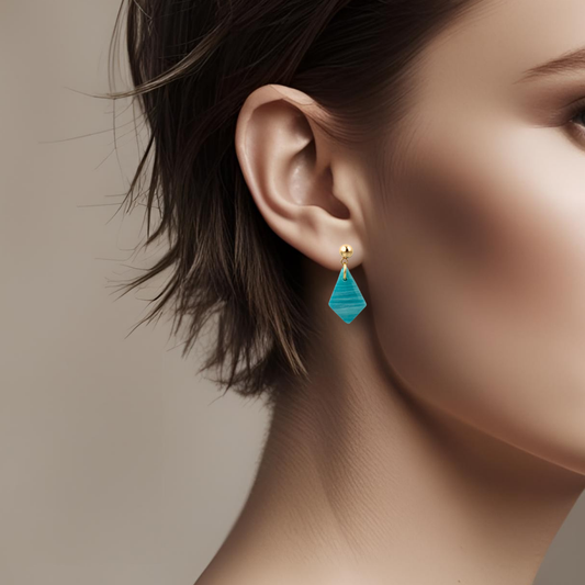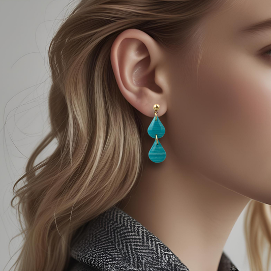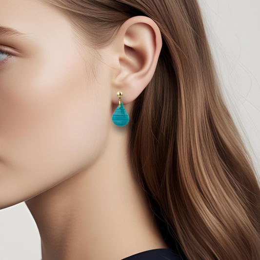 Sølvfargede øredobber med lang dråpe - Varm turkis (matt)