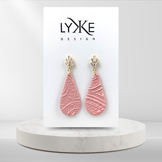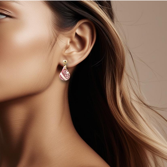 Gullfargede rosa dråpeformede øredobber med zirkonia stener