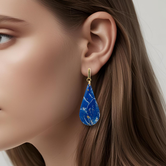 Havglimt - Dråpeformede øredobber med blå marmor-effekt