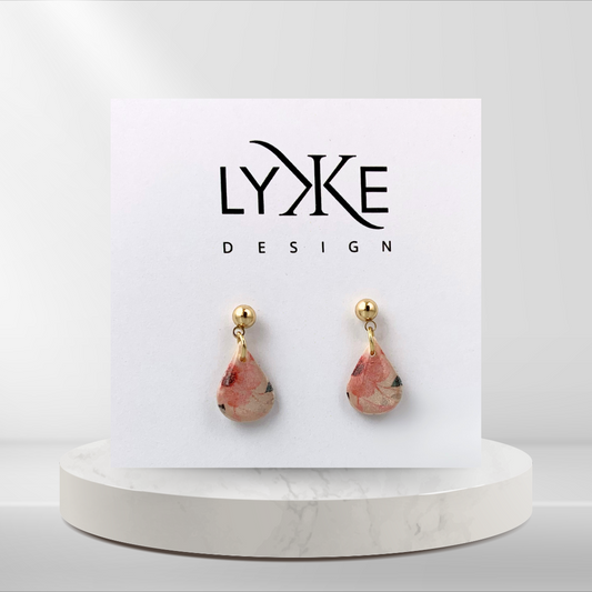 🌸 Kystrose - Gullfaregde øredobber med stor dråpe Rosa marmor/gull
