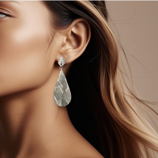 Skjærgrå- Sølvfargede håndlagde dråpeformede øredobber med zikonia