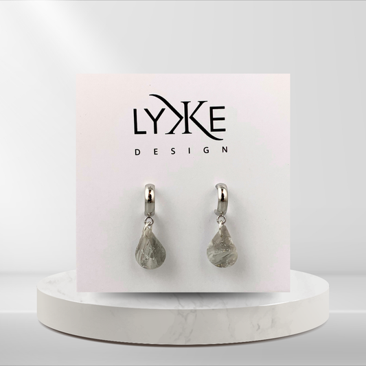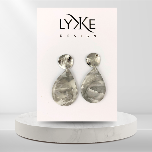 Skjærgrå - dråpeformede øredobber med grå marmor-effekt