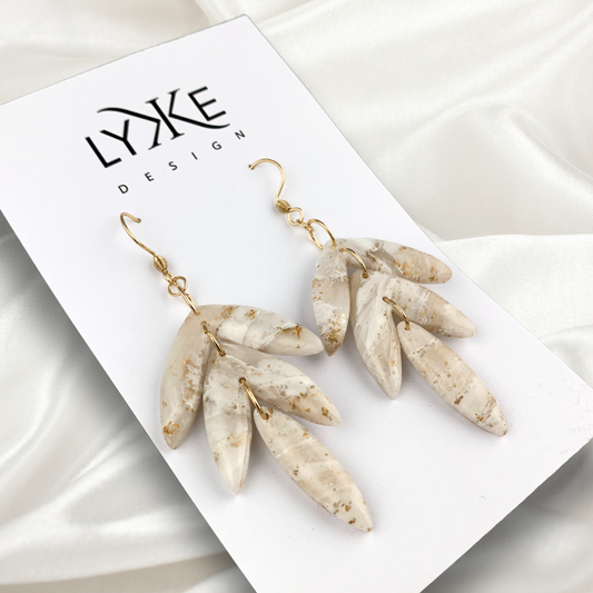 Gullfargede øredobber tre deler Beige marmor/gull