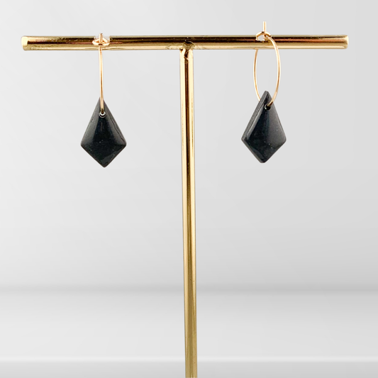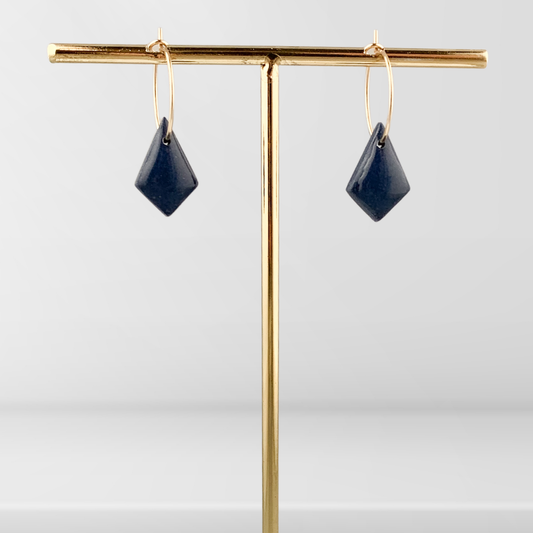Gullfargede øreringer med kvadratisk form Mørk blå/gull