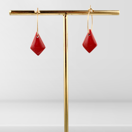 Gullfargede øreringer med kvadratisk form Mørk rød/gull
