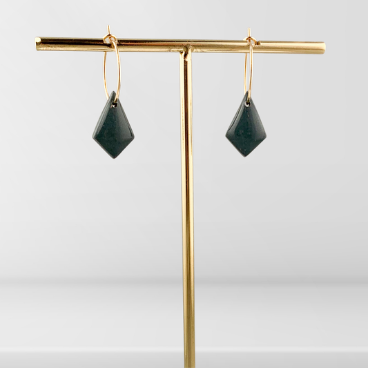 Gullfargede øreringer med kvadratisk form Blågrønn/gull