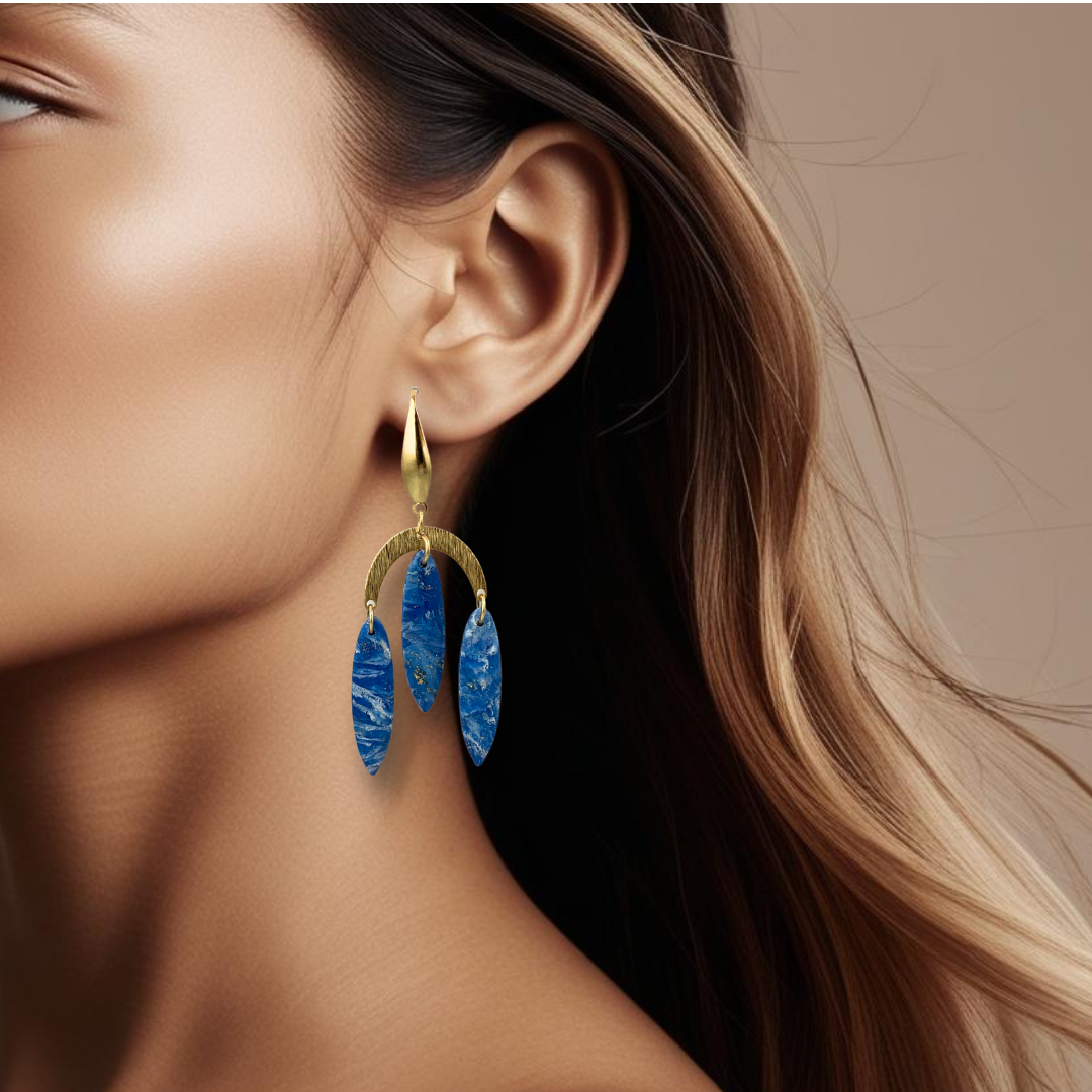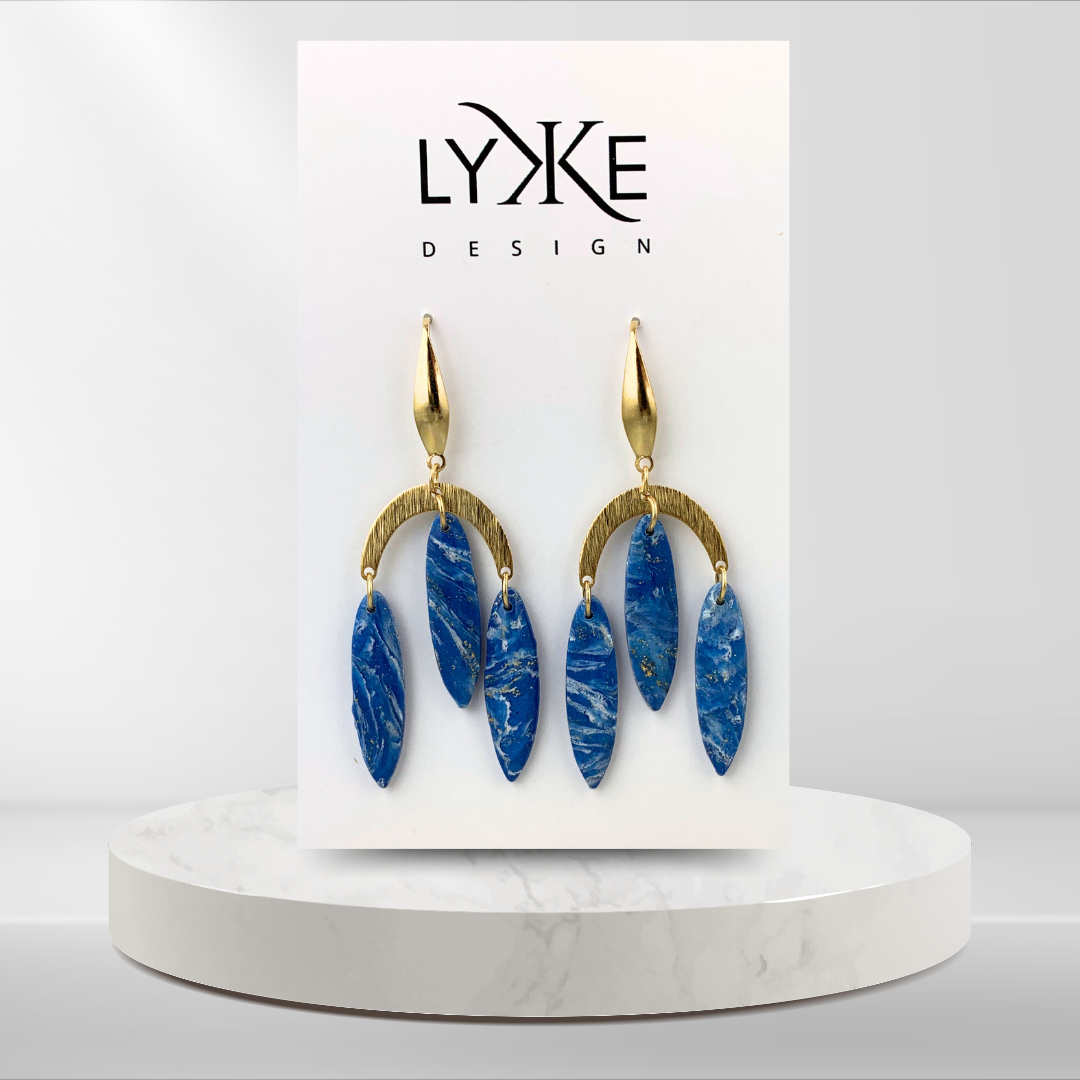 Stilige håndlagde øredobber med tre dråper med blå marmor-effekt er laget av polymerleire, et lett og holdbart materiale som sikrer at ørene dine ikke tynges, selv ved langvarig bruk.