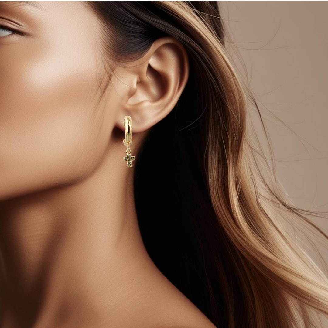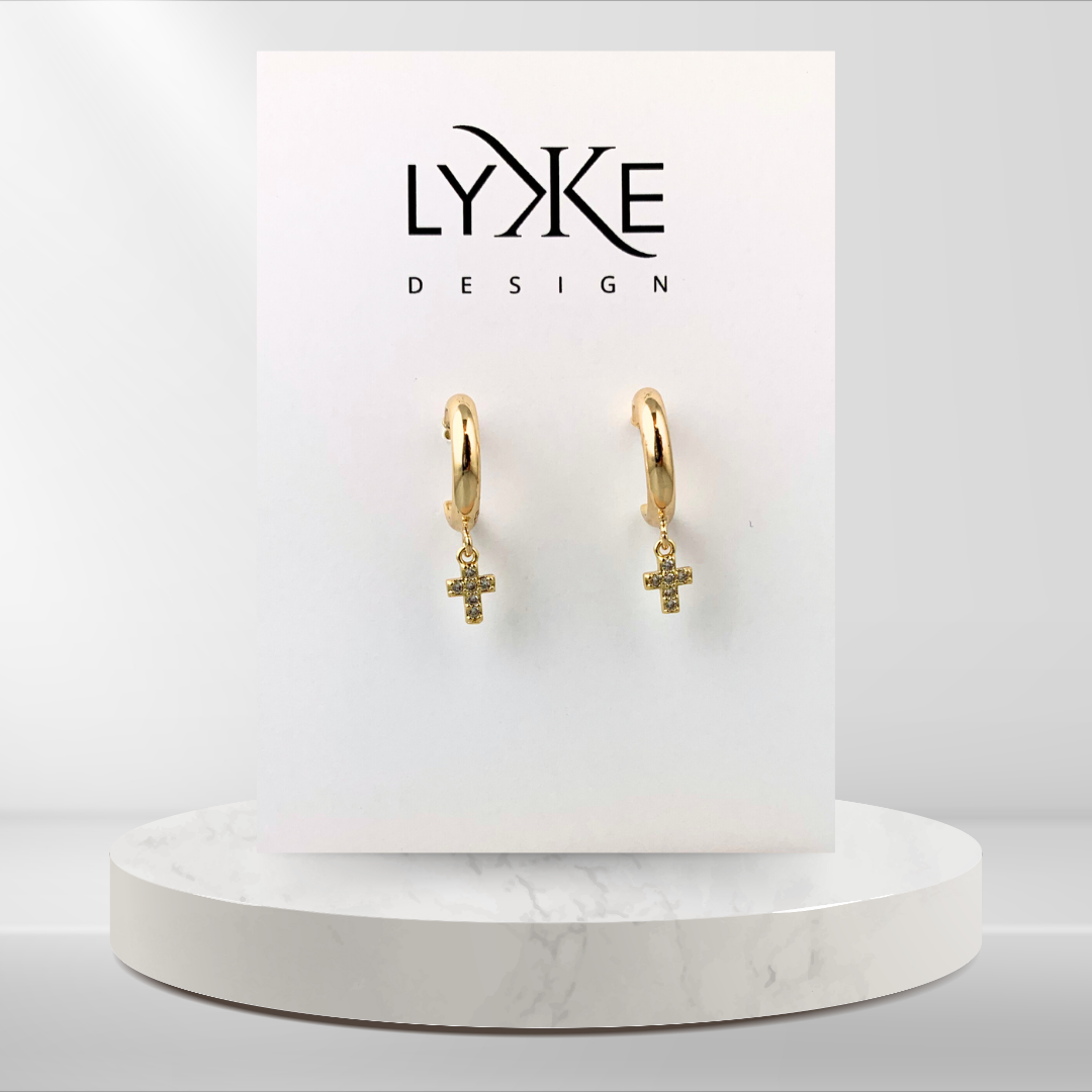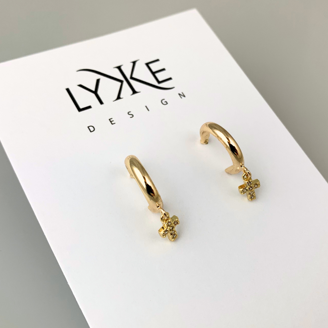Vakre øreringer med en nydelig kors-charm med blanke stener. Lette og behagelige å ha på gjennom hele dagen.