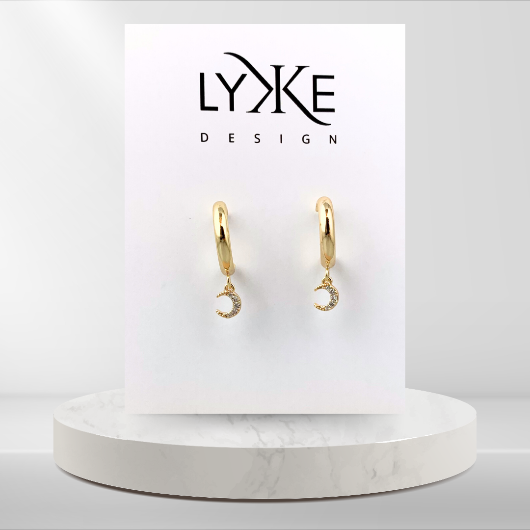Vakre øreringer med en nydelig måne-charm med blanke stener. Lette og behagelige å ha på gjennom hele dagen.