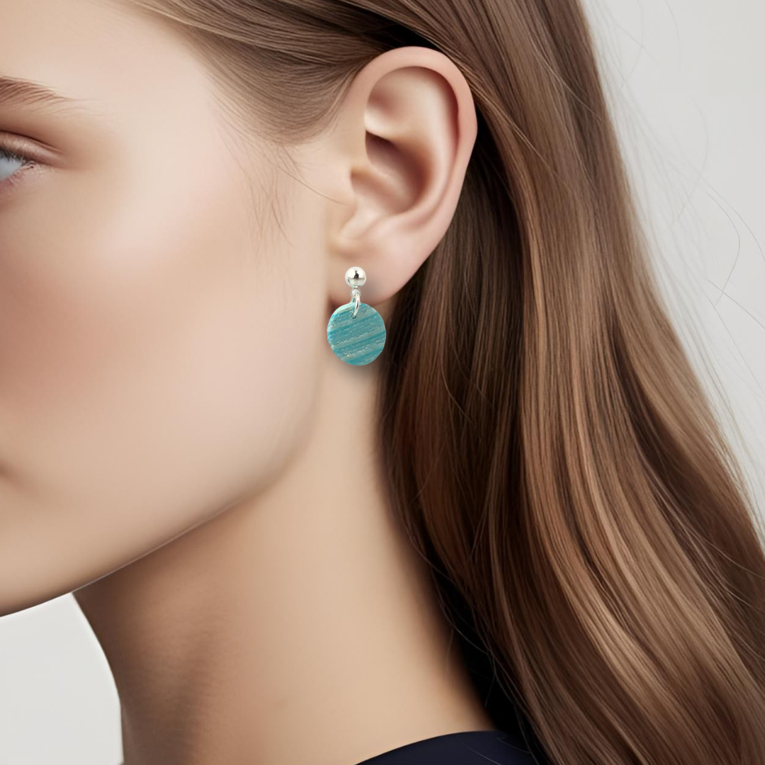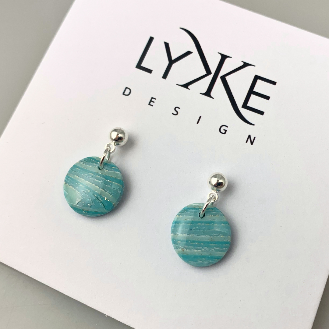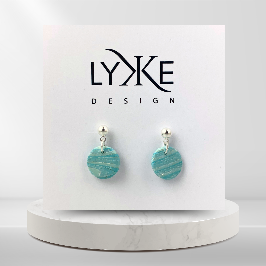 Disse søte runde øredobbene med turkise striper er laget av polymerleire, et lett og holdbart materiale som sikrer at ørene dine ikke tynges, selv ved langvarig bruk.