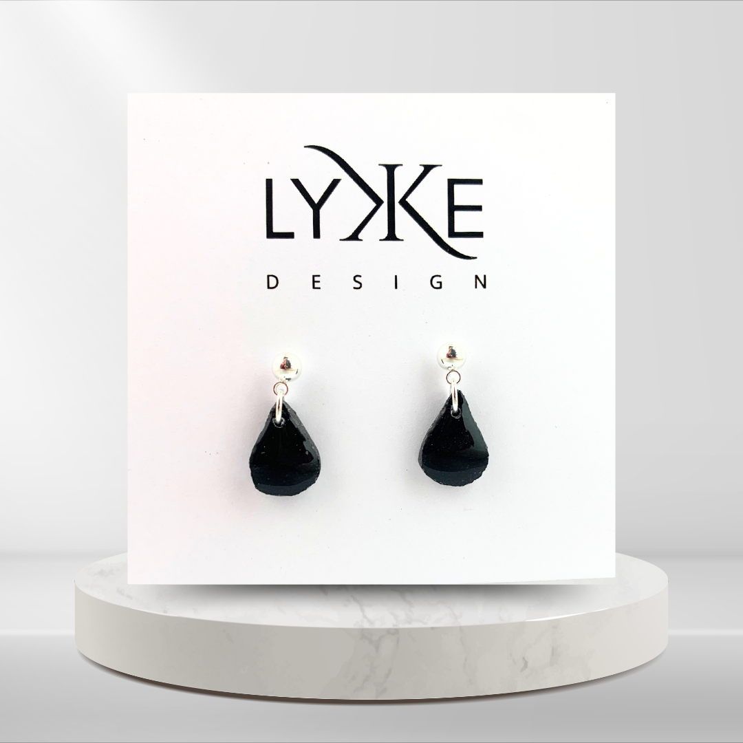 Sølvfargede øredobber med liten dråpe Sort glitter/sølv