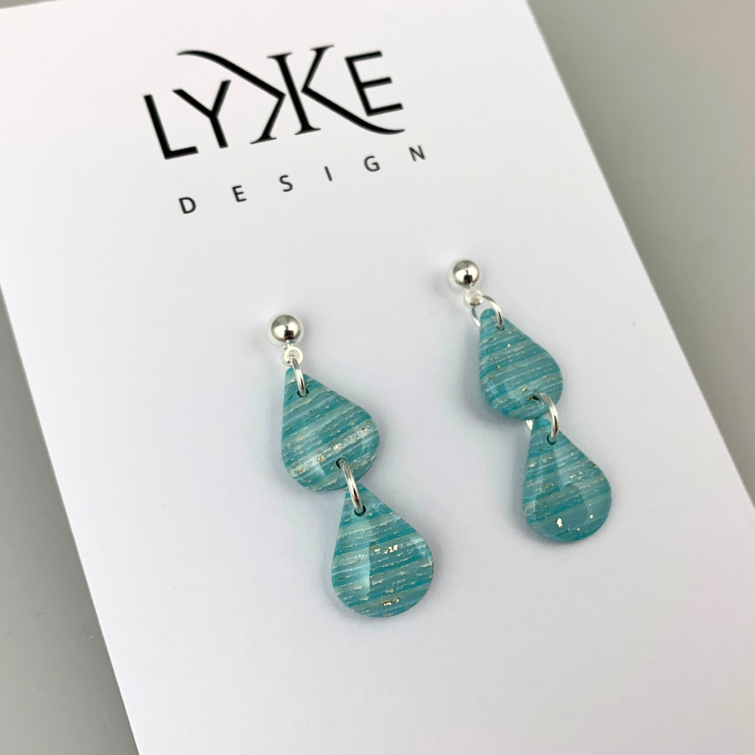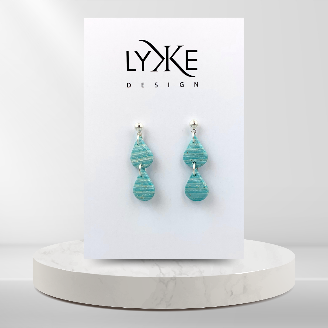Sølvfargede øredobber med to små stripete dråper Turkis/sølv