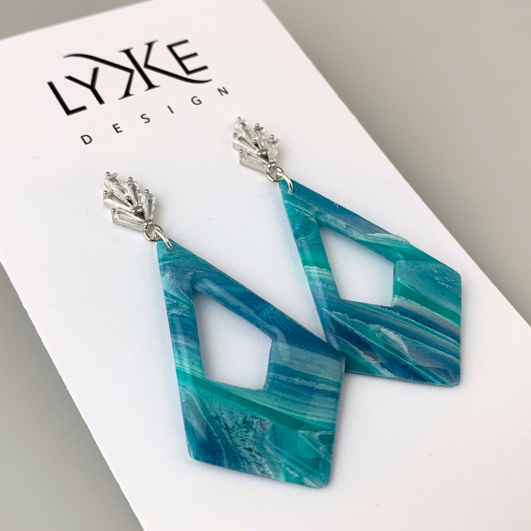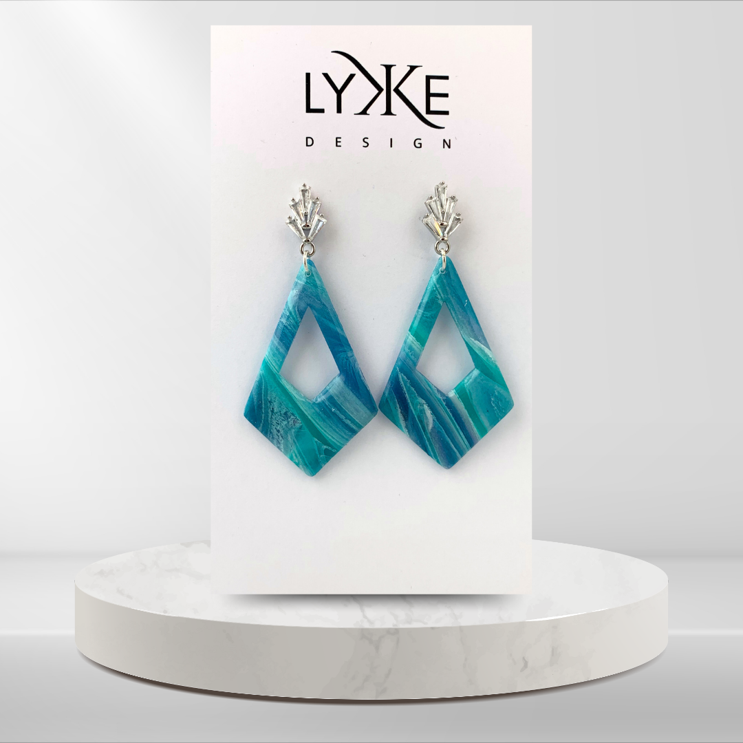 Sølvfargede øredobber med kvadratisk form Blå-grønn/sølv