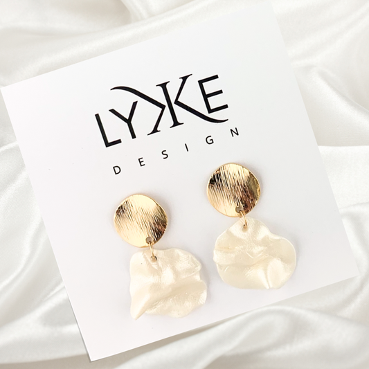 Skjellglans - Gullfargede øredobber med bølget sirkel Hvit perlemor/gull